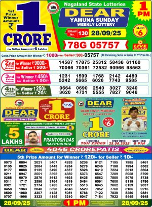 Nagaland State Lottery Result Today 1PM 28.09.25