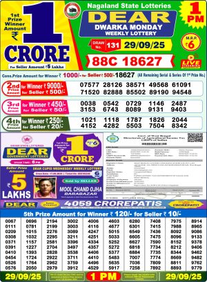 Nagaland State Lottery Result Today 1PM 29.09.25