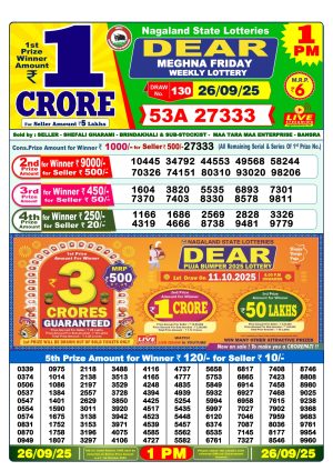 Nagaland State Lottery Result Today 1PM 26.09.25