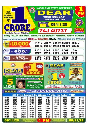 Nagaland State Lottery Result Today 1PM 09.11.25