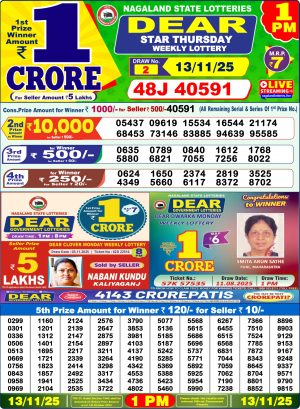 Nagaland State Lottery Result Today 1PM 13.11.25