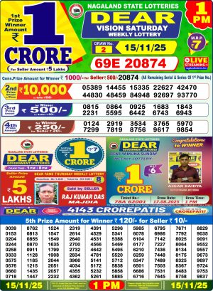 Nagaland State Lottery Result Today 1PM 15.11.25
