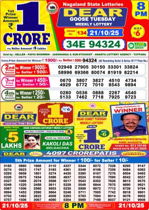 Nagaland State Lottery Result Today 8PM 21.10.25