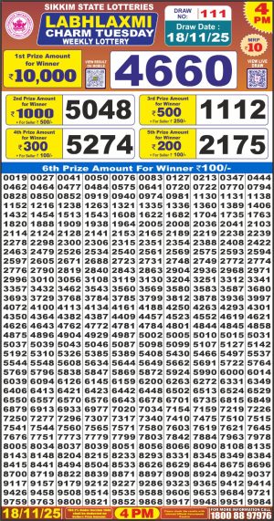 Dear Lottery Monthly Chart Labh Laxmi Lottery 4PM Result 18.11.25