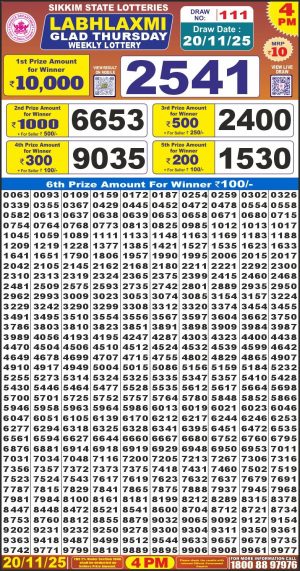 Dear Lottery Monthly Chart Labh Laxmi Lottery 4PM Result 20.11.25