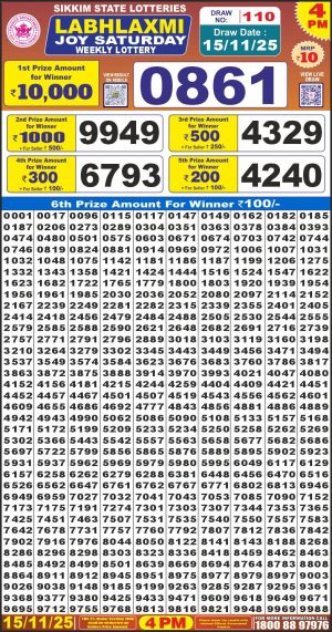 Dear Lottery Monthly Chart Labh Laxmi Lottery 4PM Result 15.11.25