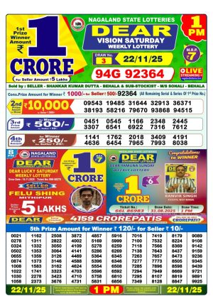 Nagaland State Lottery Result Today 1PM 22.11.25