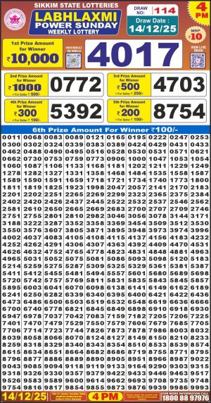 Dear Lottery Monthly Chart Labh Laxmi Lottery 4PM Result 14.12.25