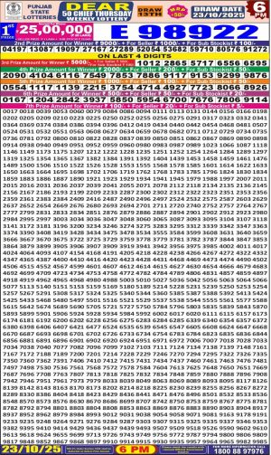 Dear Monthly Chart Punjab State Dear 50 6PM Lottery Result 23.10.25