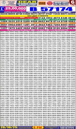Dear Monthly Chart Punjab State Dear 50 6PM Lottery Result 25.10.25