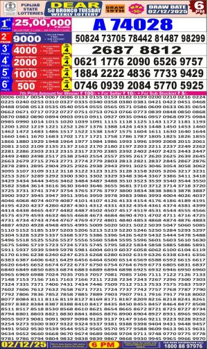 Dear Monthly Chart Punjab State Dear 50 6PM Lottery Result 02.12.25