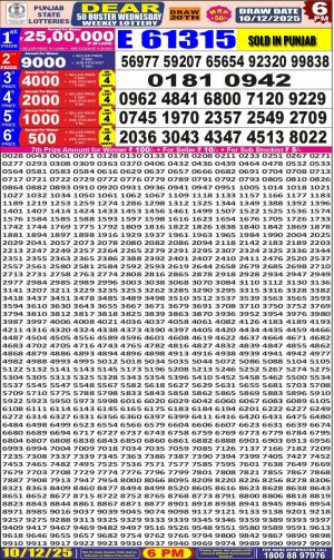 Dear Monthly Chart Punjab State Dear 50 6PM Lottery Result 10.12.25